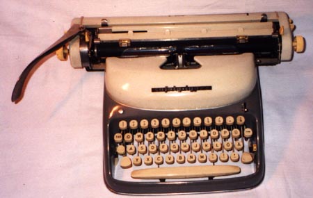 On the right, courtesy Norbert Schwarz, is Alpina s/n 144,996. This also dates to 1958 but is the new model KBS, according to Norbert. It retains keyboard arrangement features of the old pre-1958 machines, and it may be true that KBS production did not run much longer than this time period. Alpina may have been 'running out the stocks' of older internal parts. Speaking of parts --- Norbert informs us that the very early Alpina machine seems much like a Triumph, and I've noted that the type-bar mechanism of late machines seems close to that of Olympia portables. How's THAT for intrigue? |